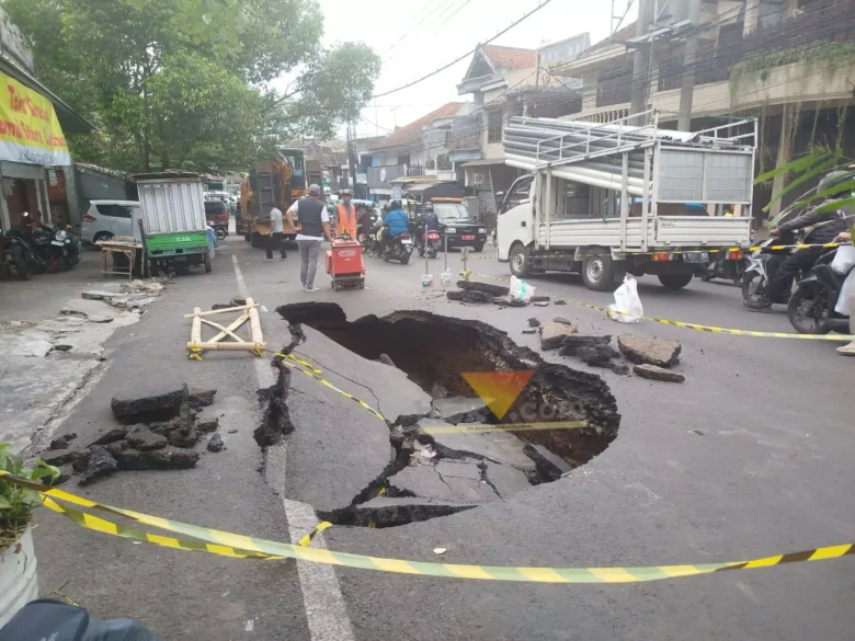 Sehingga membuat retakan dan cekungan seperti mangkok di tempat amblesnya aspal di Jalan Muharto ini.