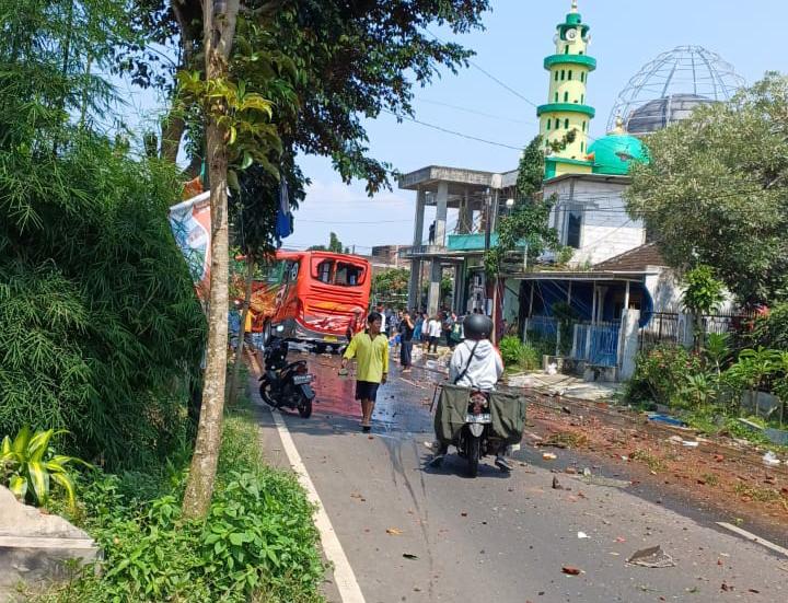 “Itu bus alami remblong dan menabrak truk, motor yang berjalan dari arah berlawanan hingga terhenti setelah menabrak dua rumah warga,” ujar Soleh warga setempat.