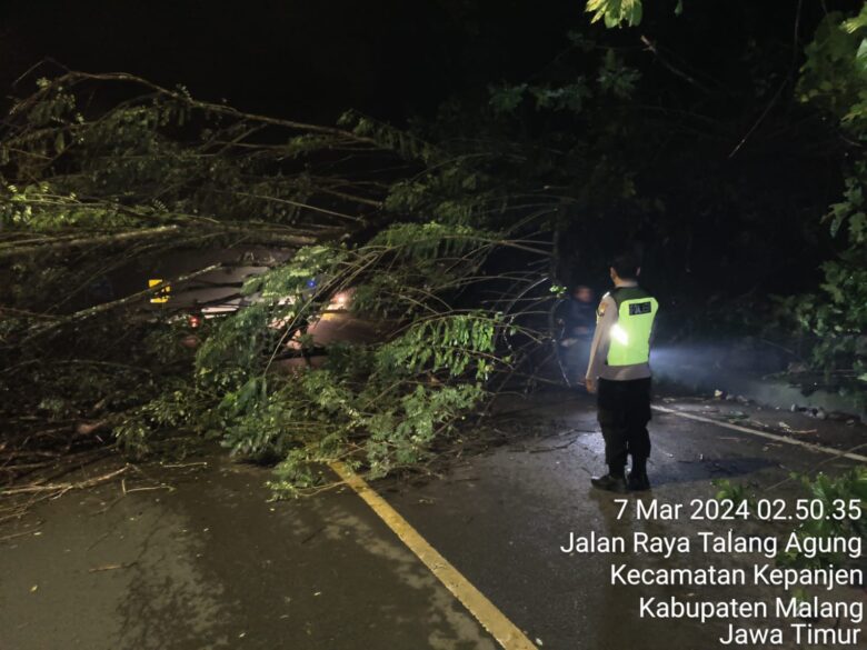 Peristiwa pohon tumbang tersebut dilaporkan oleh masyarakat kepada Polsek Kepanjen sekitar pukul 02.40 WIB.