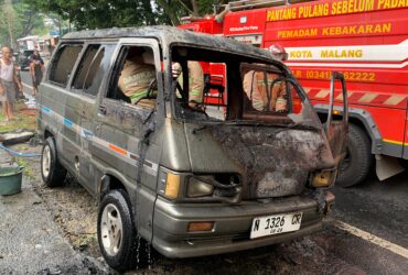 Mobil Zebra Milik Warga Bareng Terbakar Dekat Terminal Mulyorejo Kota Malang